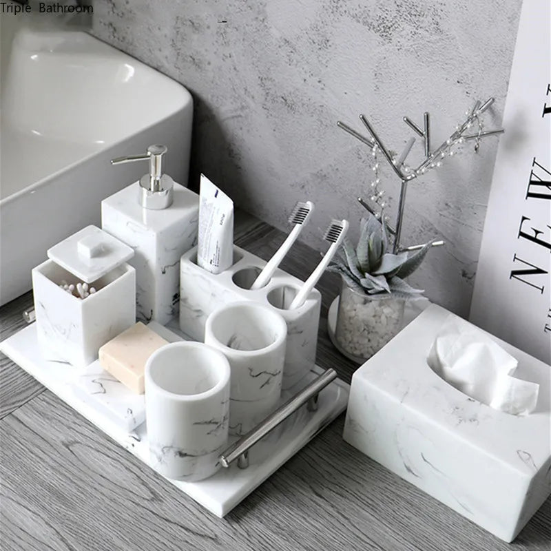 Light luxury Marble Stripe Resin Wash Set Soap Dispenser
