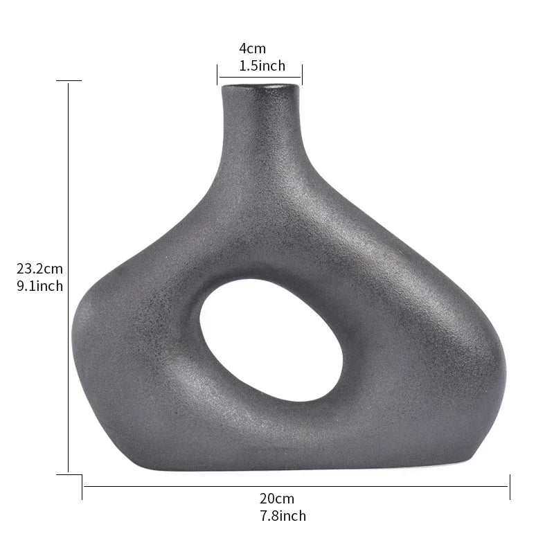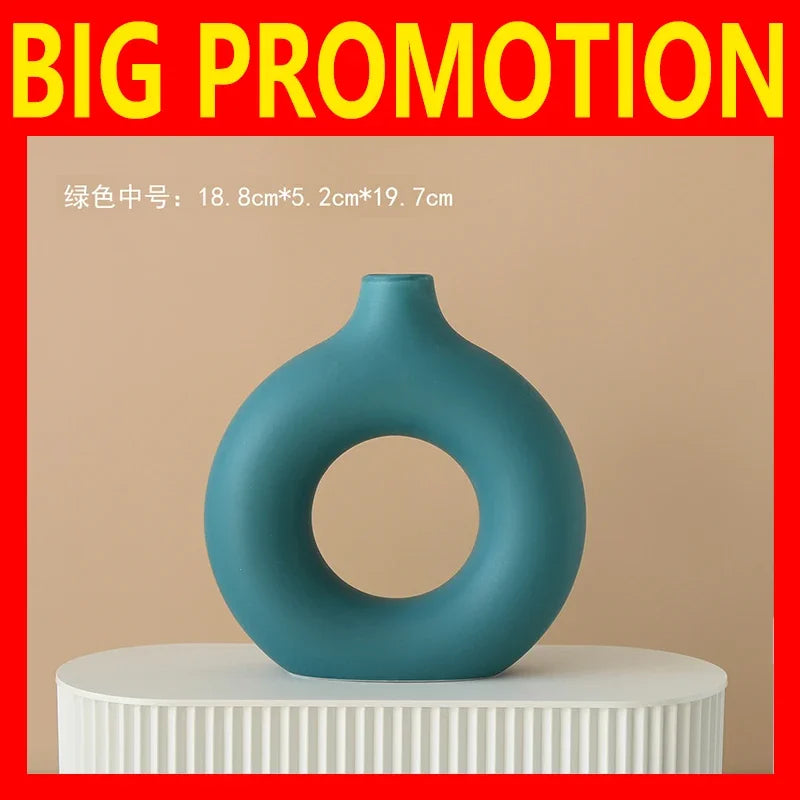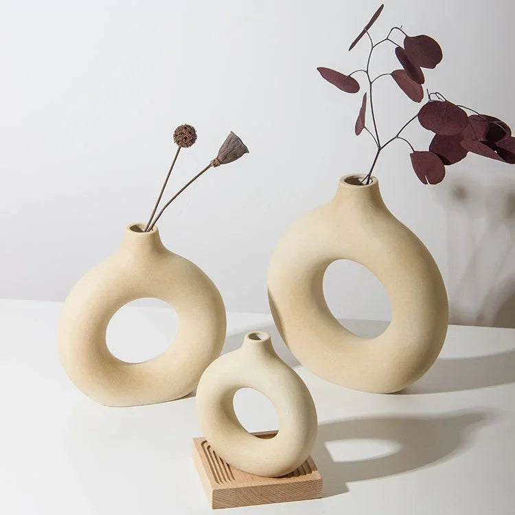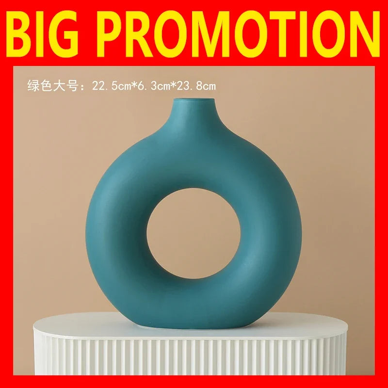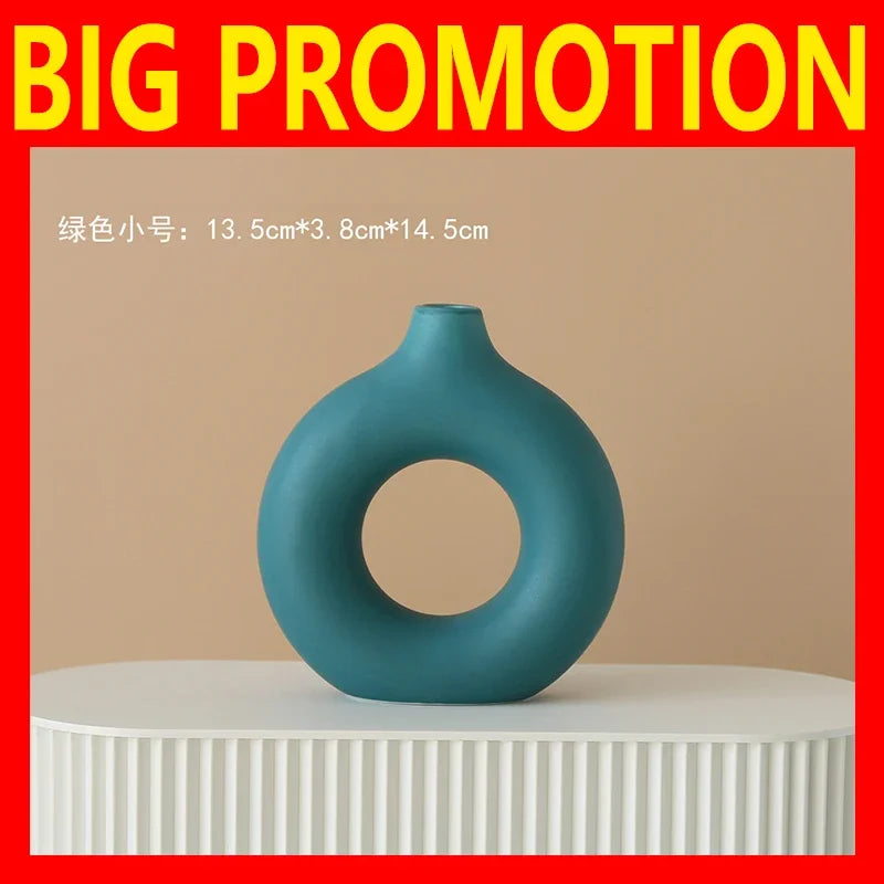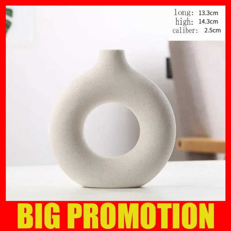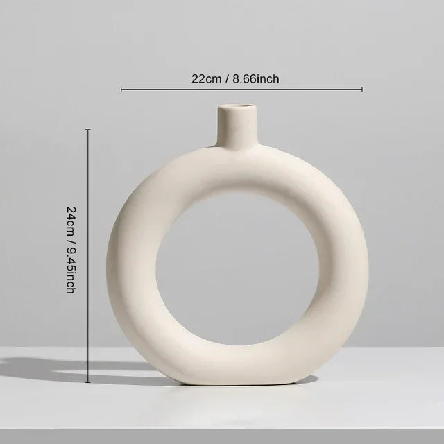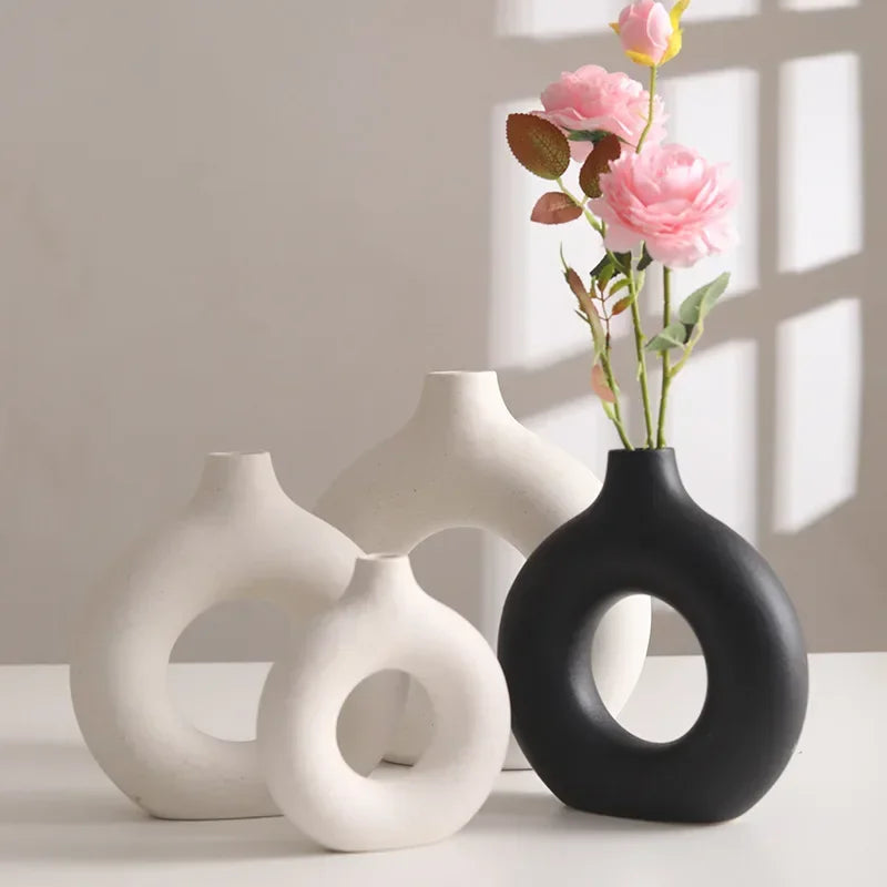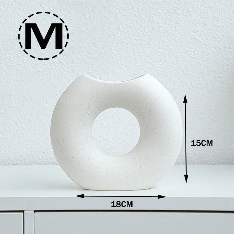 Nordic Vase Circular Hollow Ceramic Donuts Flower Pot
